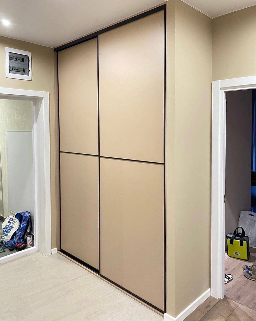 В прихожую присмотрели бежевый шкаф купе, потому что хотелось спокойный и универсальный цвет. Оттенок оказался очень приятным и хорошо сочетается с интерьером. Шкаф сделали по нашим размерам, поэтому он идеально занял место у стены. Внутри всё продумано: есть штанга для одежды, полки и несколько удобных ящиков. Двери двигаются плавно и тихо. Шкаф получился вместительным, аккуратным и отлично дополнил интерьер коридора.
