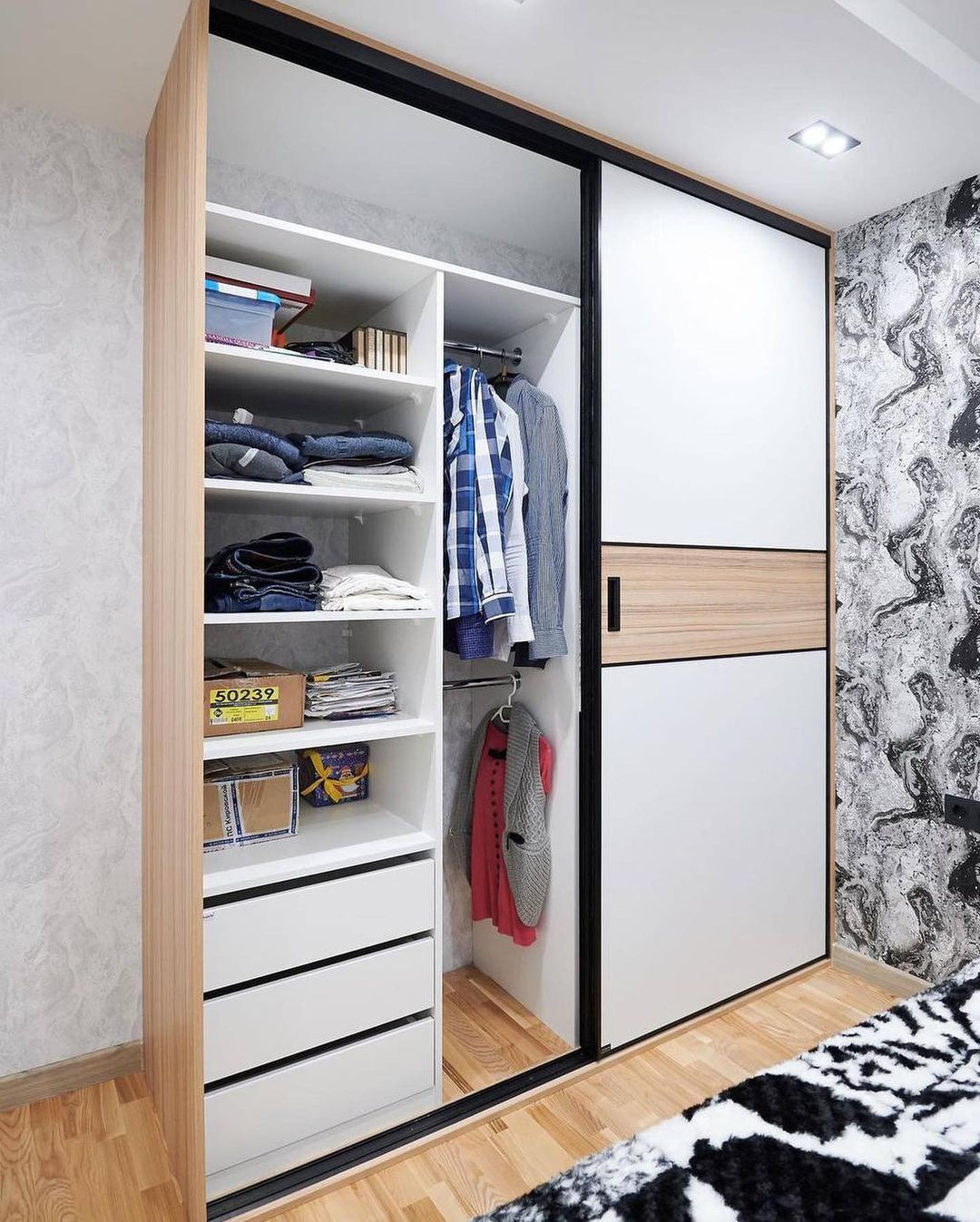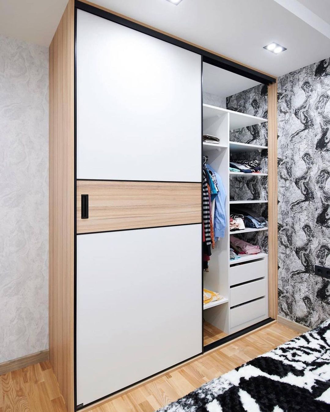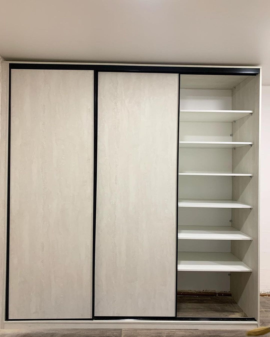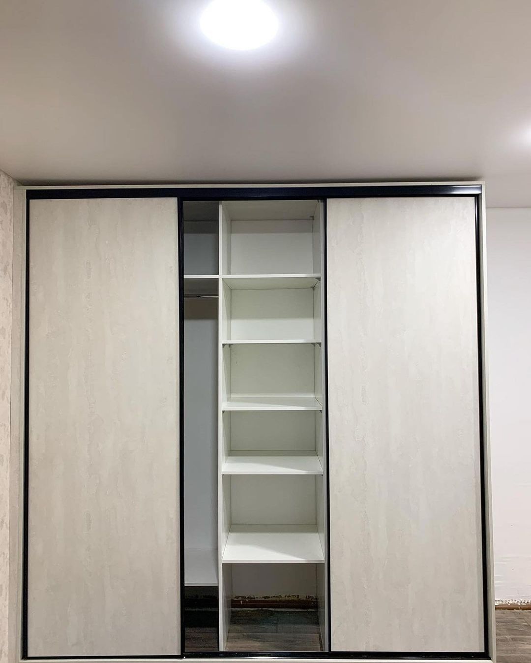 В прихожую бежевый шкаф купе, потому что хотелось спокойный и универсальный цвет. Оттенок оказался очень приятным и хорошо сочетается с интерьером. Шкаф сделали по нашим размерам, поэтому он идеально занял место у стены. Внутри всё продумано: есть штанга для одежды, полки и несколько удобных ящиков. Двери двигаются плавно и тихо. Шкаф получился вместительным, аккуратным и отлично дополнил интерьер спальни.